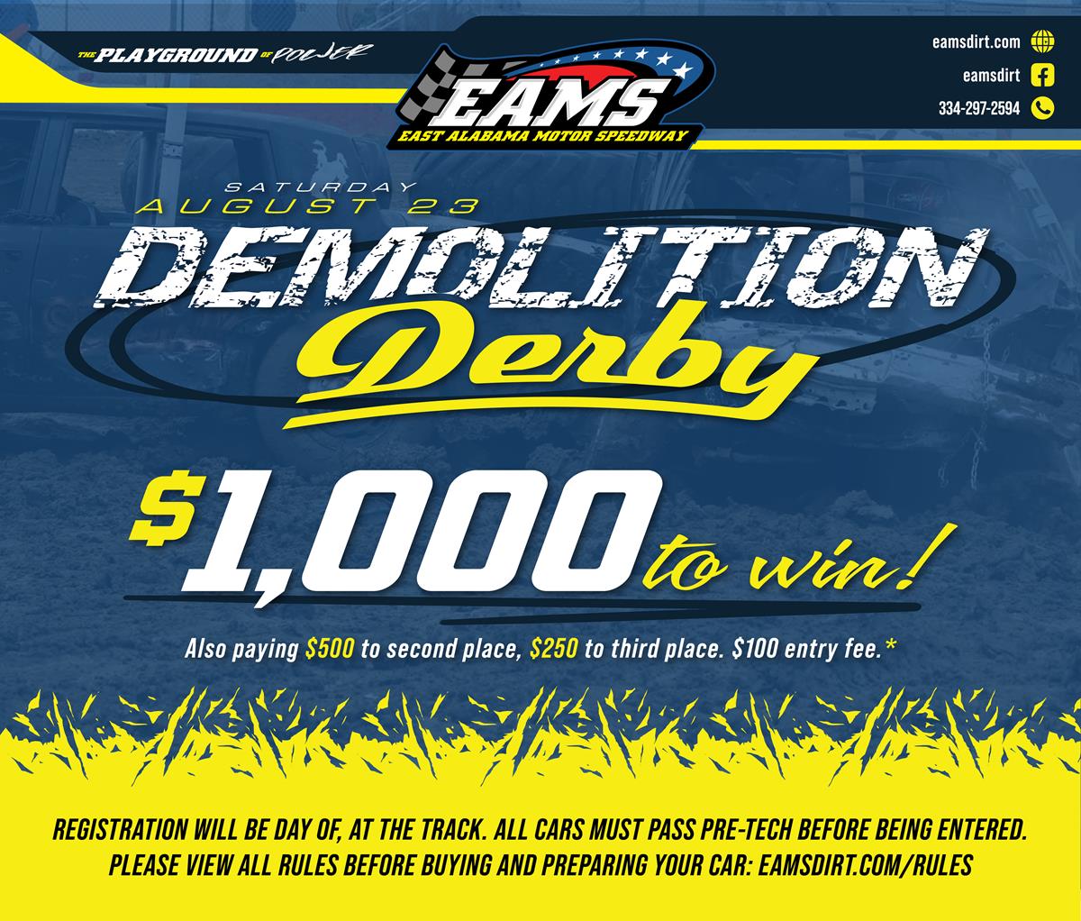 It's been far too long since we've had a good, old-fashioned Demo Derby at the Playground of Power, so let's do it! We'll line 'em up on the front-stretch and watch the chaos begin! Cash prizes to the top 3 finishers, if you're interested in participating, read our rules and info HERE: https://www.eamsdirt.com/downloads/get.aspx?i=1103078